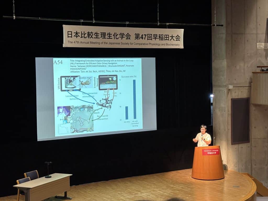 From 5–7 December 2025, the 47th Annual Meeting of the Japanese Society for Comparative Physiology and Biochemistry (JSCPB 2025) was held at Waseda University, Japan. Prof. Dr. Poramate Manoonpong was invited as a symposium speaker, delivering a talk on “Insect-Inspired Resilient Machines” in Symposia 1: Understanding and Reconstructing Animals through Interdisciplinary Convergence.