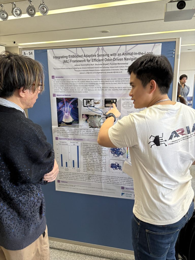 In addition, our postdoctoral researcher, Dr. Jettanan Homchanthanakul, presented a poster and delivered a one-minute flash presentation during the conference, titled “Integrating Embodied Adaptive Sensing with an Animal-in-the-Loop (AIL) Framework for Efficient Odor-Driven Navigation”.