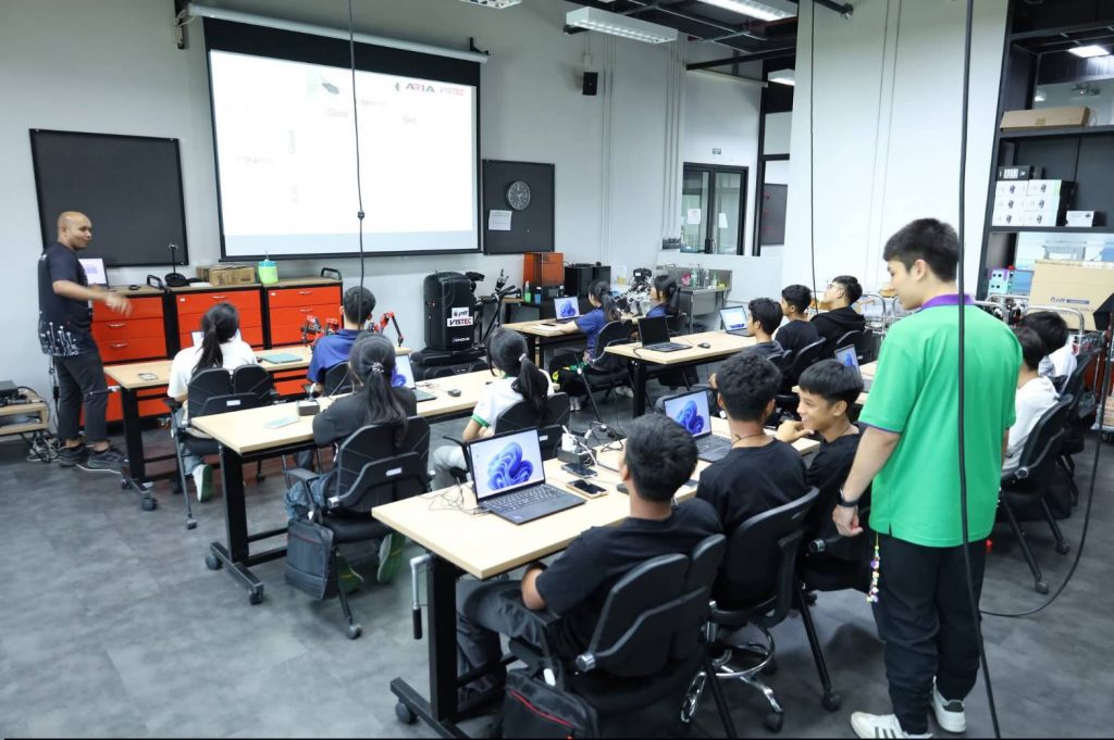 A key highlight of the program occurred on March 18, when the participants visited VISTEC to engage with cutting-edge technology. The sessions focused on Physical AI and robotics, moving beyond theoretical coding to show how intelligence is integrated into hardware to interact with the physical world.